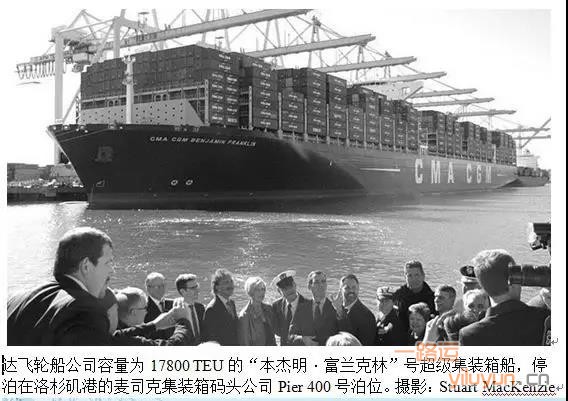 一位行业观察人士说:“这是一个大事件。这艘船太大,无法通过巴拿马运河,它的到来凸显了美国西海岸港口的持续重要性。”