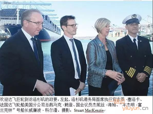 达飞轮船公司的“本杰明·富兰克林”号抵达时,洛杉矶市长和国会议员等一众政要都出席了欢迎仪式。两次“试航”挂靠过的洛杉矶、长滩和奥克兰港都表达了希望大船进行常规性挂靠的殷切期待。