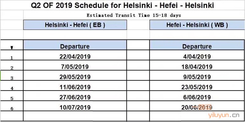 今年通过各方面资源整合,每个月有来自赫尔辛基和合肥的四列火车对开,将会在这条航线在两个方向上常态化运营。