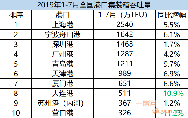 根据区域来看,辽宁省各大港口依旧出现较大跌幅,只有锦州港稳如泰山,实现了10.7%的双位数增长。根据港口圈了解,大连港与营口港集装箱吞吐量之所以出现较大跌幅,一方面是由于交通运输部统计口径的变更,另一方面也是由于受到贸易战的冲击,最早开始撤并航线。港口圈认为,下半年,全国各大港口受贸易摩擦冲击会逐渐显现,集装箱吞吐量的增幅将进一步趋缓。